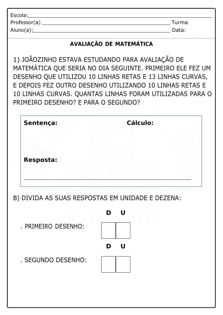 São 160 avaliações para o 1º ANO DO ENSINO FUNDAMENTAL, contendo todas as disciplinas, sendo elas para os 4 bimestres do ano, perfeitas para professores que estão a procura de avaliações prontas para aplicar e com gabaritos.