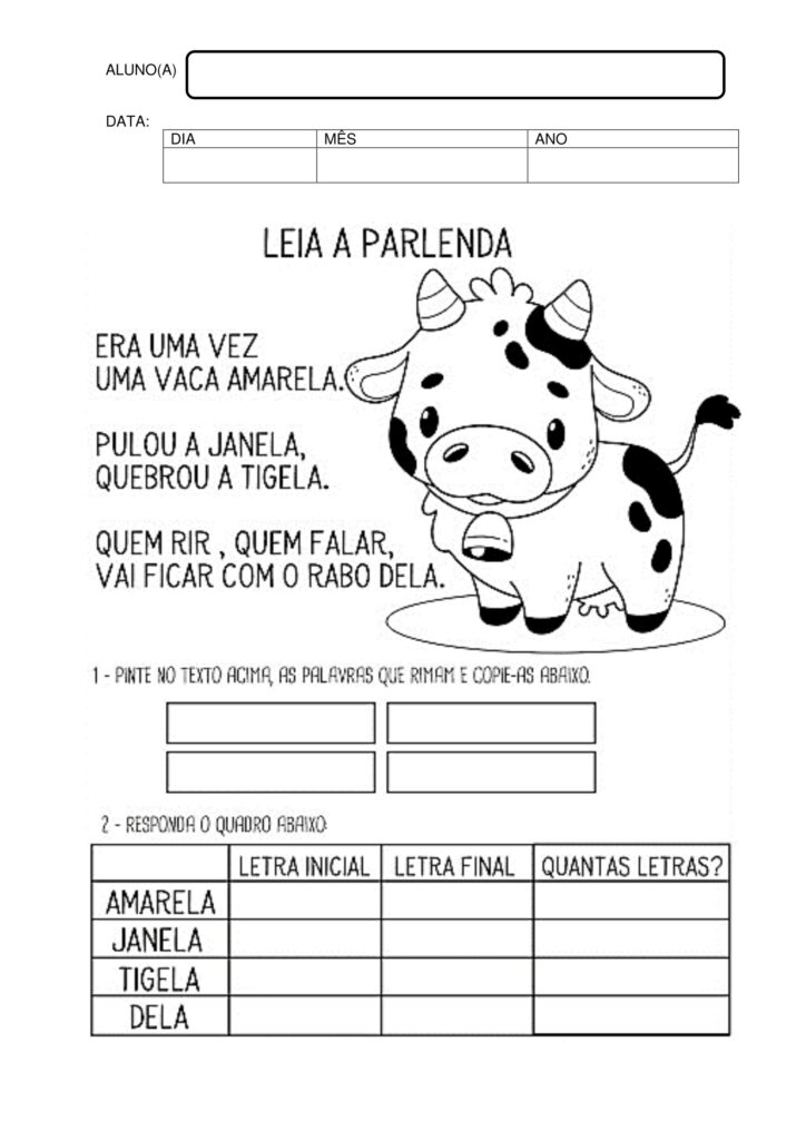 1º ANO – Roteiro e atividades de 02/03 a 06/03/2026 para imprimir