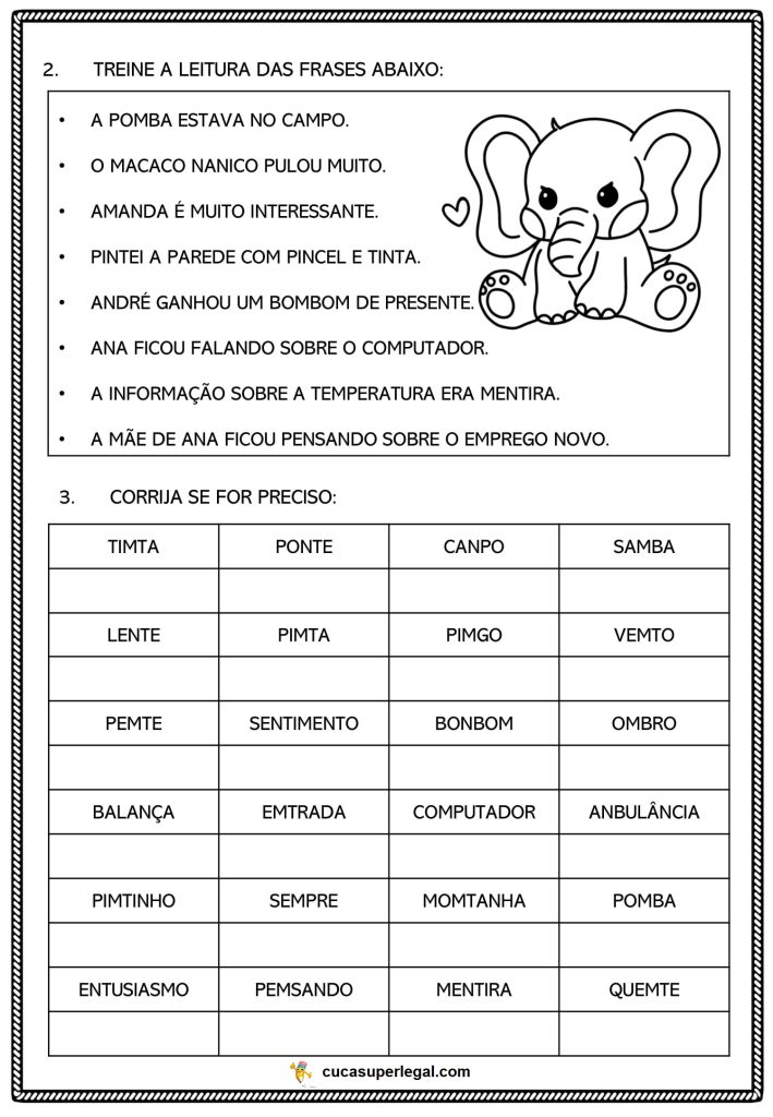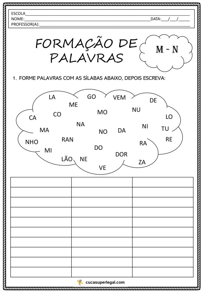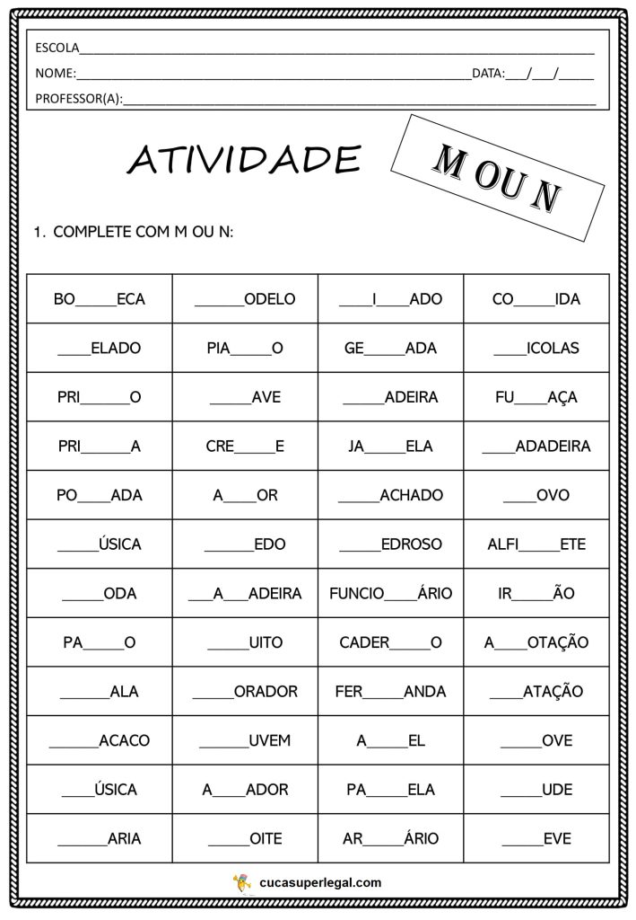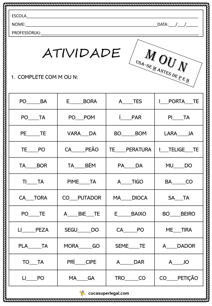 1º ao 5º ano – ATIVIDADADES DE ORTOGRAFIA M e N